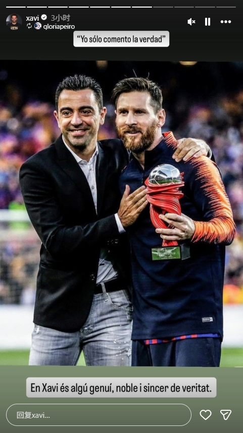 今日哈维转发球迷晒出的自己与梅西的合影,并表示:“我只说真话”。