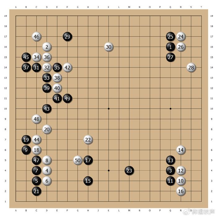 黑17跳起扩张,吴侑珍在左下角定型后,白22和缓镇头。