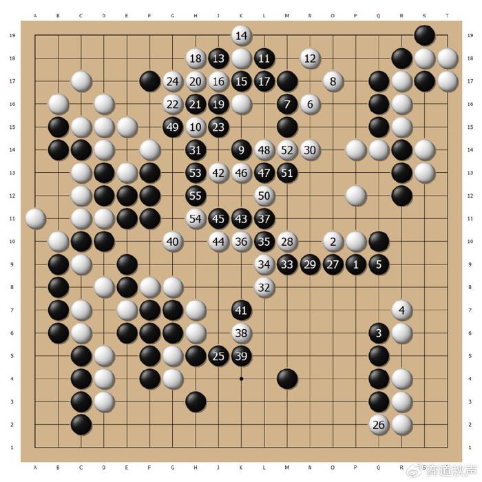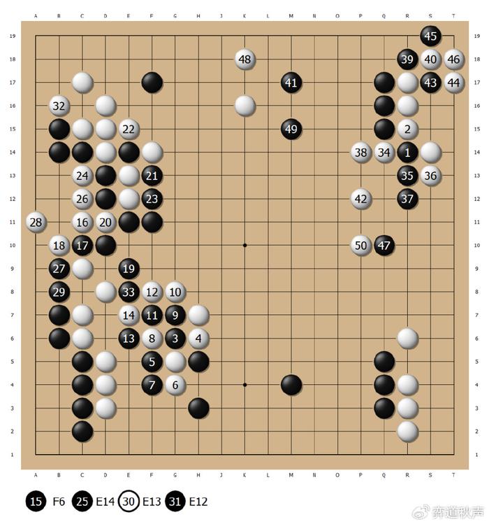 白24断吃三子,被黑27、29先手断开,黑33再断,几乎是转眼之间,白棋已经呈现崩溃局面。